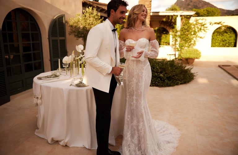 Rochiile de mireasa cu maneci, fie ele lungi sau scurte, revin în forta. Acestea nu doar ca ofera un plus de elegantă, dar sunt si extrem de versatile, potrivindu-se anotimpurilor diverse.